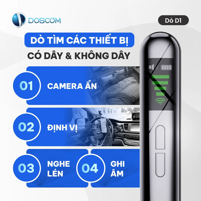 Khám phá sức mạnh của D1 Doscom – Thiết Bị Dò Máy Nghe Lén, Định Vị, Rệp, và Camera Ẩn. Bạn hoàn toàn an tâm với khả năng phát hiện đa dạng, Định vị – thiết bị nghe lén đến camera giấu kín.